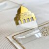 * ستاند طاولة اكريلك ذهبي أنيق متوفر بثلاث عبارة “شرفتونا” “نورتونا” “زارتنا البركة”